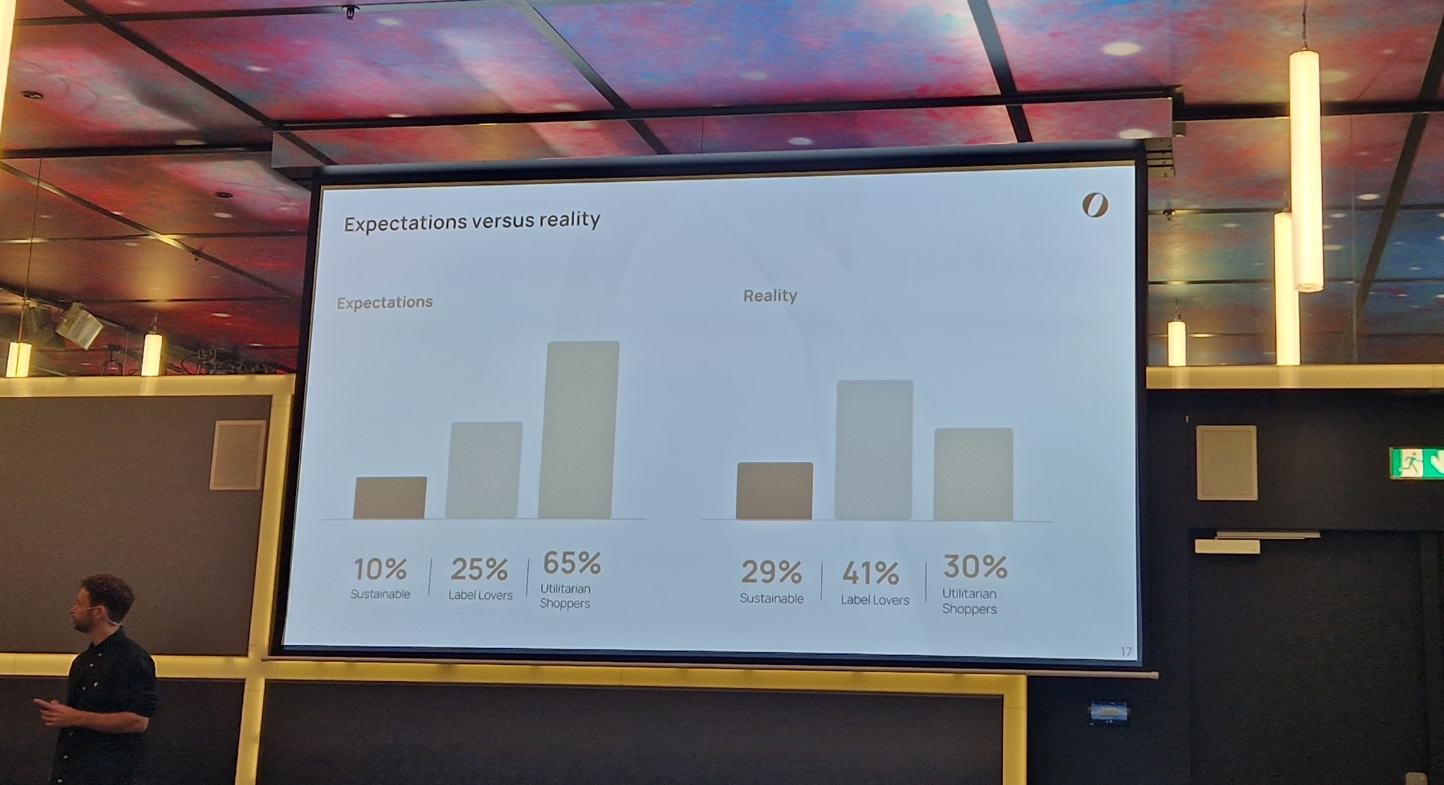 Mooi om te weten hoe je klanten zich bewegen op je eigen platform, maar het is beter om ook te weten wat ze daarbuiten doen, zegt Jeroen Hermans. Daarom heeft Ruigrok een onderzoek opgezet naar de gebruikers van Otrium. De learnings: Otrium klanten hebben veel gemeen. Ze laten graag zien wie ze zijn door wat ze dragen, dus dan gaat het over identity fit. Ook vinden ze het belangrijk, dat merken bijdragen aan duurzaamheid. Maar: niet alle Otrium klanten zijn hetzelfde. Ruigrok identificeerde 3 segmenten: