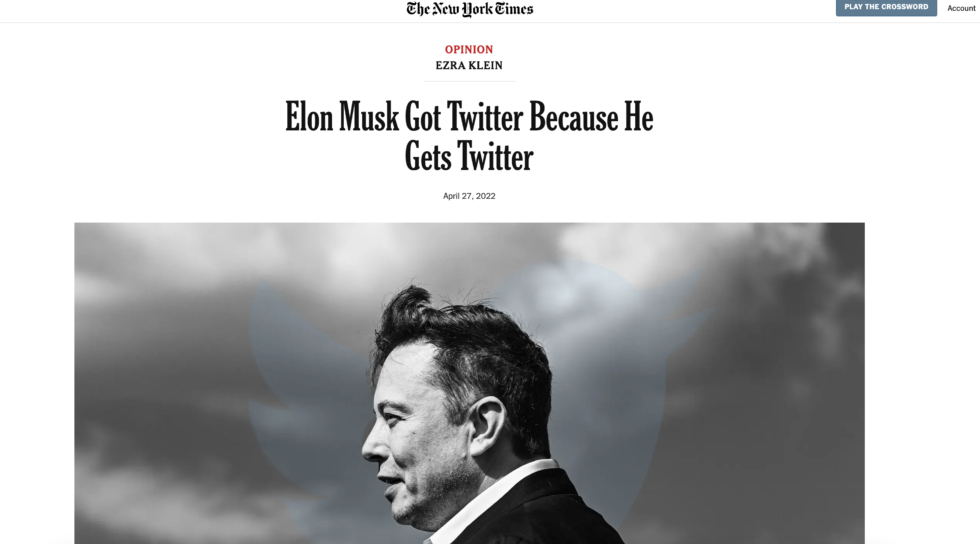 Zelden heeft een overname van een (social) medium tot zoveel commotie geleid. Vanuit alle hoeken en gaten komen de meningen naar buiten. Van gematigd positief (The New York Times: “Musk is de enige die Twitter kan laten worden wat het zou kunnen zijn”) tot zeer negatief (Maarten van Rossem: “dat die gek van een Musk Twitter gekocht heeft”) en de mannen van Podcast over Media (achter de betaalmuur van Podimo) zijn er ook nog niet helemaal uit.