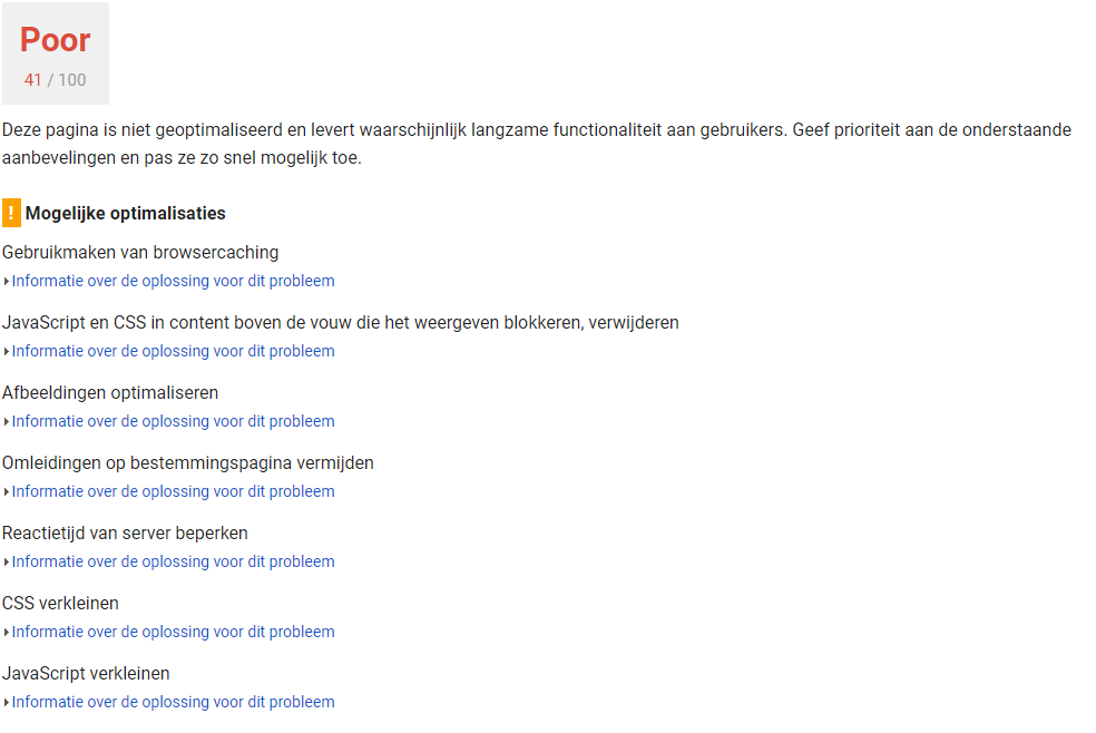 De snelheid van je website is ontzettend belangrijk, met de Google Pagespeed test kan je snel actiepunten verkrijgen om dit te verbeteren. Ook hier voer je de website en krijg je verbeterpunten te zien die je moet toepassen: