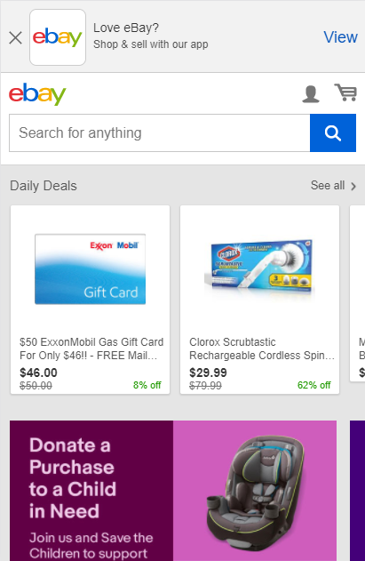 De website past zich niet volledig aan op het formaat van de browser. Als je de website bezoekt op je telefoon, dan kom je op m.ebay.com terecht.