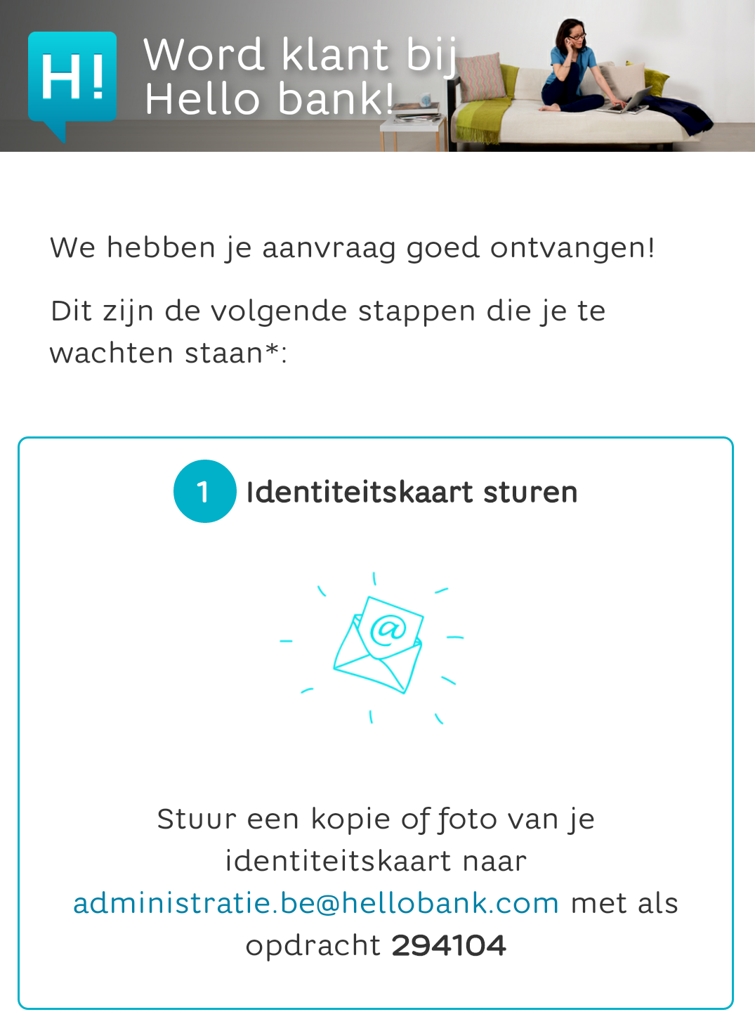 Dan wil je als bank toch geen mensen aansporen om identiteitsbewijzen via e-mail te verzenden? Als je die digitaal wilt ontvangen, doe dan dan gewoon (en uitsluitend) via een beveiligde website. Hello Bank zou zich moeten schamen (en dan ben ik zelf echt nog geen security of privacyfundamentalist).