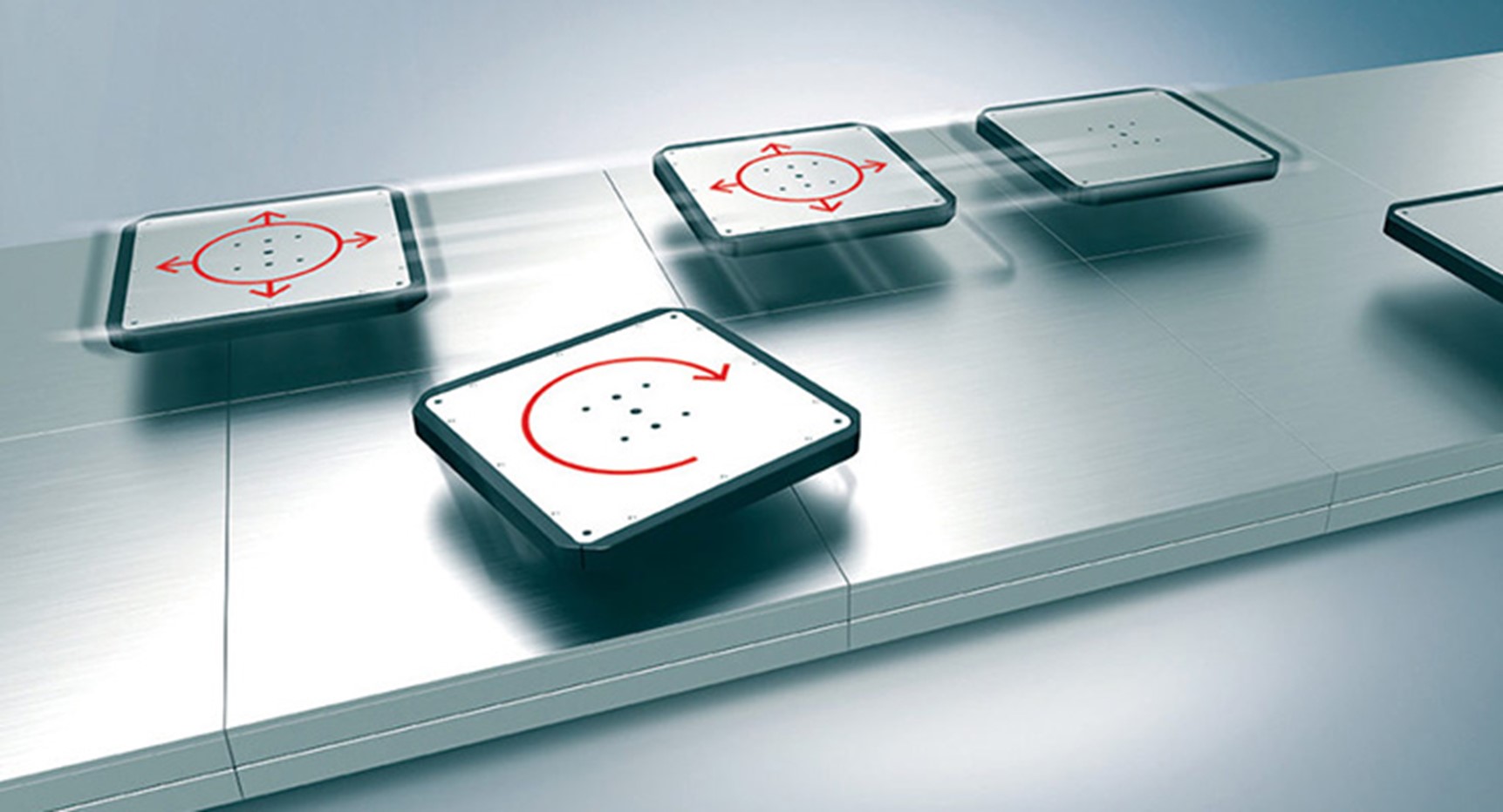 De zwevende shuttles kunnen draaien en ‘schuiven’ en zo elk hun eigen route afleggen langs verschillende productieprocessen. Bron: Planar Motors Inc.