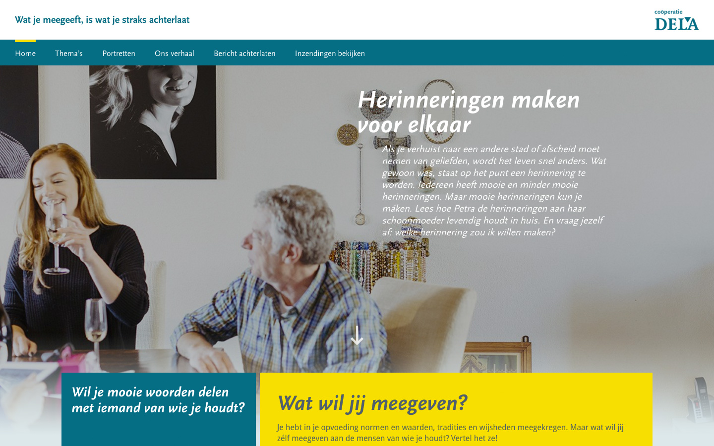 “Wat daar heel concreet bij hoort, is het creëren en laten renderen van een eigen contenthub. Dela.nl is vooral een informatieve website. Hier moeten mensen vooral informatie kunnen vinden en zaken kunnen regelen, zoals het afsluiten van een verzekering. Het WatJeMeegeeft.nl-platform biedt veel meer inspiratie. We willen daar met pullcontent een zachtere landing geven aan consumenten. Mensen worden vanuit die omgeving vervolgens weer uitgenodigd om op het forum met anderen in gesprek te gaan over onderwerpen die hen bezig houden rondom leven en dood.”