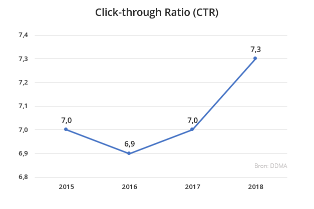 Ook de click-through ratio (CTR) is het afgelopen jaar weer met 0,3 procent gestegen naar 7,3 procent.
