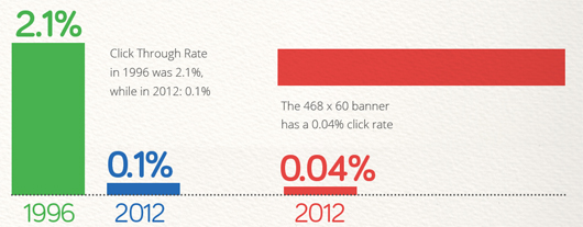 Native advertising wordt gezien als een geschikt antwoord op de steeds verder groeiende bannerblindheid. Volgens Solve Media en Column Five was de CTR van banners in 2000 nog gemiddeld 9 procent, maar is deze inmiddels gedaald naar 0,2 procent. Nieuwe vormen van display advertising overkomt hetzelfde. Zo is de mate waarin pre-rolls worden geskipt flink aan het toenemen. Onderzoekscentrum Banner Blindness verzamelde verschillende onderzoeken in een infographic over bannerblindheid. Daaruit blijkt dat de helft van de internetters nooit op een banner klikt en nog eens 35 procent op minder dan 5 per maand. Dat terwijl de gemiddelde surfer er maandelijks zo’n 2.000 krijgt voorgeschoteld!