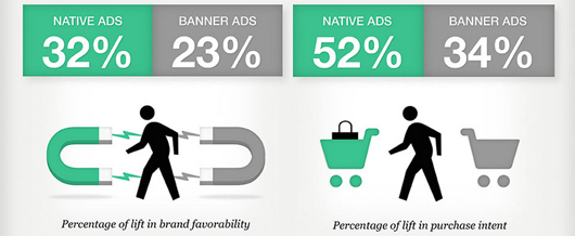 Bij native ads was de toegenomen aankoopintentie 18 procent hoger en de toegenomen affiniteit met het merk 9 procent hoger dan bij display ads