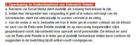Volgens de Reclamecode Social Media (RSM) dienen disclosures altijd een onderdeel van de native advertising te zijn: