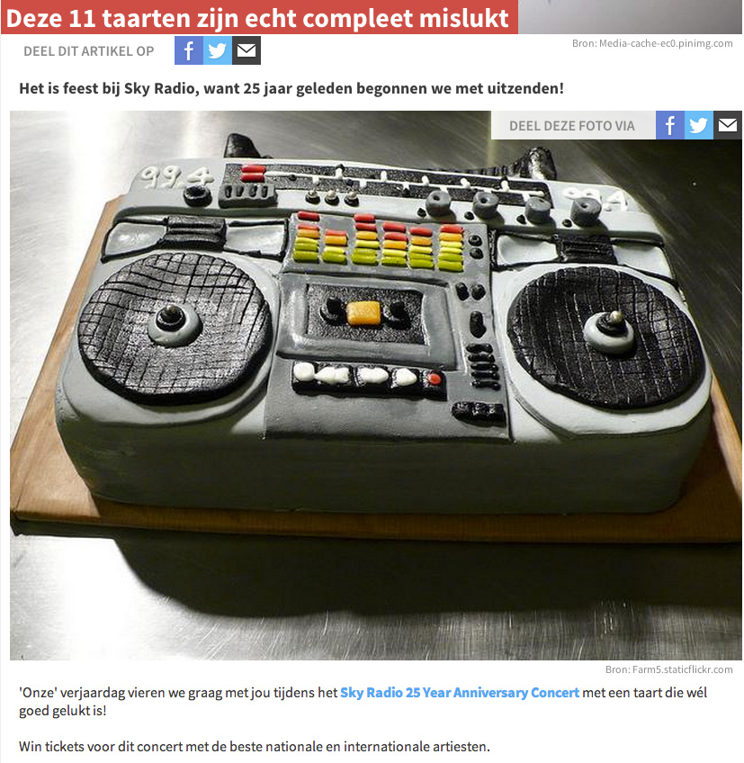 Ook op het vlak van native advertising heeft Upcoming flink wat geleerd. De belangrijkste les: hoe subtieler het merk, hoe meer het gedeeld wordt. De content is belangrijker dan de uiteindelijke boodschap of call to action. Een goed voorbeeld van een merk dat dat goed begreep, was Sky Radio met een post over mislukte taarten.