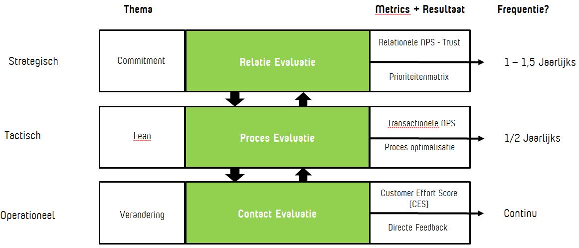 Wij zijn bovendien van mening dat je NPS vooral moet inzetten op strategisch en tactisch niveau, voor respectievelijk evaluaties van de relatie en ‘geraakte’ klantprocessen. Voor het evalueren van contactmomenten achten we NPS minder geschikt dan bijvoorbeeld de customer effort score of andere direct-feedback-kpi’s.