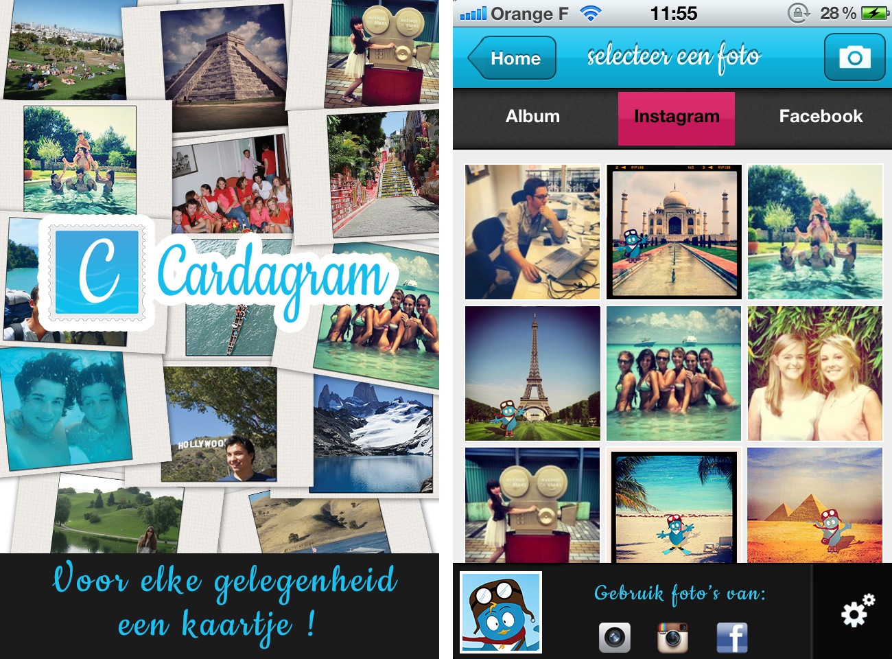 Cardagram is gelanceerd in 4 landen. Eerst in Frankrijk en onlangs in Duitsland, Engeland en Engeland. Na een kleine 2 maanden zijn er al 20.000 apps gedownload en bijna 14.000 kaartjes verstuurd. Momenteel hebben we een iPhone-app en binnenkort komen we ook uit op de Android. En we werken hard aan een versie 2.0. We richten ons erg op mensen die graag kaartjes willen sturen en zijn dus constant bezig om de gebruikservaring te verbeteren. Doordat je met Cardagram makkelijk hetzelfde kaartje aan meerdere adressen kan sturen biedt de app ook vele mogelijkheden voor bedrijven die uitnodigingen of aankondigingen willen versturen.