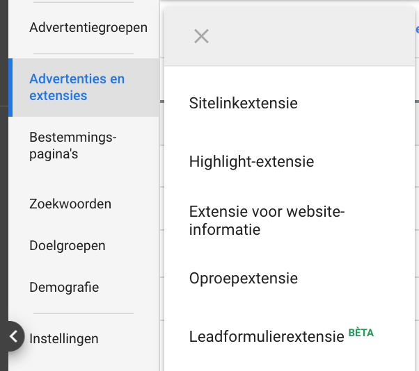 De leadformulier-extensie is op het moment nog in bèta, en alleen voorbehouden aan Google Premier Partners. De nieuwe extensie wordt bij hen beschikbaar onder het kopje ‘Advertenties en extensies’. Omdat het een bèta betreft, kan het dus zijn dat het in sommige accounts niet zichtbaar is.