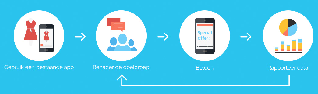 De klant geeft toestemming pushberichten te ontvangen en gedrag te meten via de app van de retailer. Met deze informatie kan een retailer de klant voorzien van relevante informatie in de juiste context waardoor de interactie voor zowel klant als retailer waarde toevoegt.
