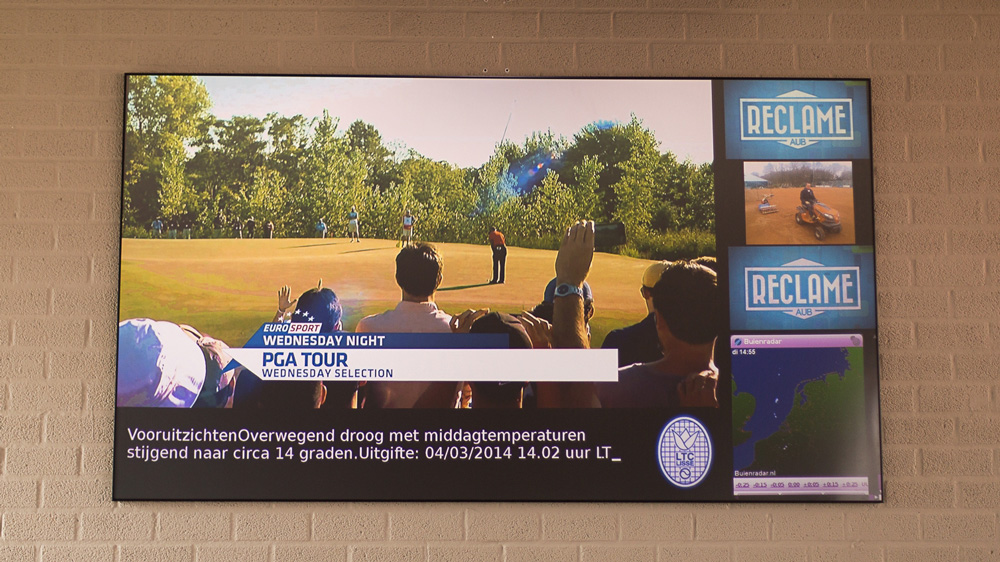 Je kan je eigenlijk geen betere ‘launching customer‘ in Nederland wensen dan de publieke omroep, de NPO. Daar is inmiddels in de centrale hal van het hoofdkantoor op het Mediapark een 100” dnp Public Viewing-scherm geïnstalleerd. Een fantastische referentie, maar om het concept volledig tot zijn recht te laten komen, heb je toch een ‘commerciële’ locatie nodig. En die hebben we gevonden bij de tennisclub LTC Lisse en het Groene Paviljoen-conferentiecentrum in Baarn.