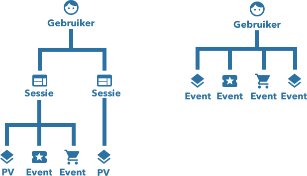 Google Analytics kenmerkt zich momenteel nog door een focus op sessies en dimensies. De informatie die wordt meegezonden kan worden gekoppeld aan hits, sessies of gebruikers. Deze hiërarchie en de manier waarop bepaald wordt wat een sessie precies is, is verwarrend. De focus verschuift daarom naar gebruikers en gebeurtenissen en hieraan kunnen parameters worden gekoppeld.