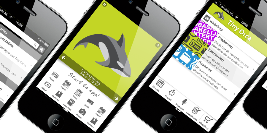 Tiny Orca is niet de ‘zoveelste’ appcreator. Wij hebben namelijk zelf een modulair systeem ontwikkeld waardoor klanten kunnen voortborduren op de basis die wij hebben staan. Zo heeft ons designteam de tijd genomen om de grafische interface van de grond af op te bouwen. Het resultaat is een zorgvuldig en bijzonder ontwerp. Maar klanten kunnen ook hun eigen design in de app verwerken en eigen toepassingen ontwikkelen. Hosting, onderhoud en uploaden naar de app stores wordt gewoon door ons geregeld. Klanten krijgen zo een prachtige tool in handen om beter contact te maken én te houden met hun klanten, fans en/of doelgroepen.