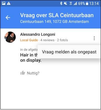 Net als bij reviews is het mogelijk om vragen en antwoorden te melden bij Google als ze niet in lijn zijn met het te volgen beleid of ongepast zijn. Bij reviews kost het Google veel moeite om spam te weren. Of dit bij vragen en antwoordenanders zal zijn, moet nog maar blijken.