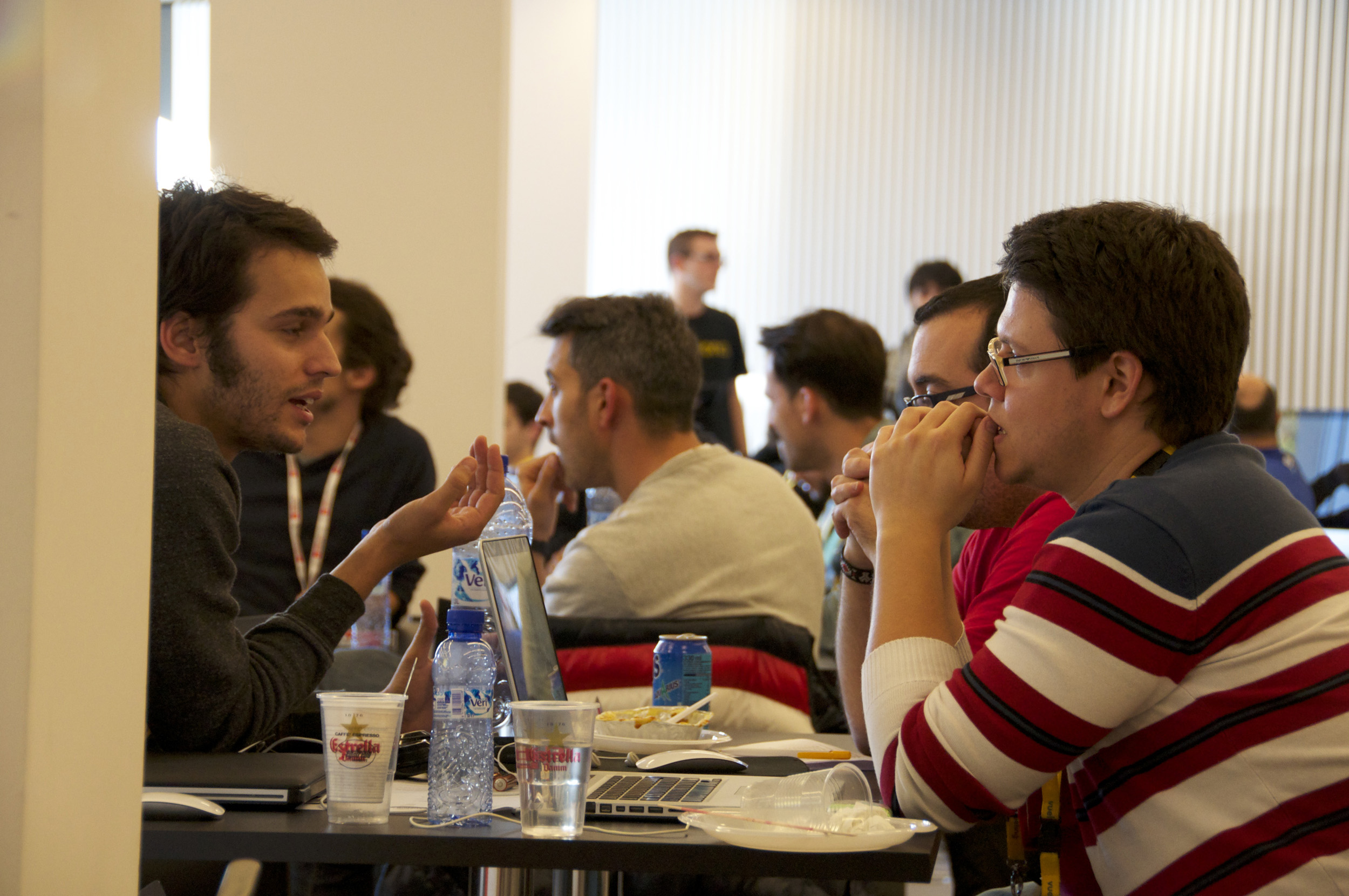 80 developers, een berg aan iMac’s, laptops, tablets en smartphones en ladingen developer-voer. Dat waren de ingrediënten voor de 24-uur-durende Vueling Hackathon die vrijdagavond van start ging in Barcelona. Twintig teams die 24 uur doorhalen om een concept voor een mobiele app voor Vueling te ontwikkelen. Om te zien hoe dat er aan toe ging, was ik van de partij.
