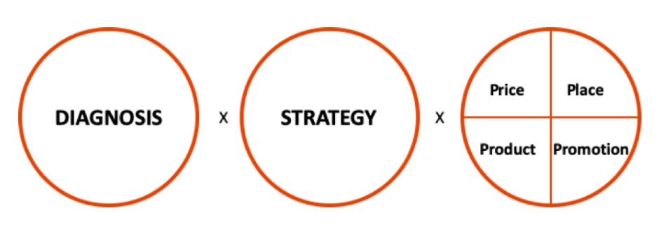 Marketing valt volgens Ritson uiteen in drie delen: diagnose, strategie en tactiek. Die laatste stap vertegenwoordigt de bekende P’s. De veelgemaakte denkfout is dat tactiek (zoals een social-mediacampagne, een schappositie) wordt verward met strategie zoals een marketingplan. Of dat de diagnose – onderzoek – plaatsvindt ná het formuleren van de strategie. Volgende week gaan de Effies eruit en daar wordt door de jury gekeken of de tactiek wel paste bij de vooraf geformuleerde diagnose en strategie. Je kunt immers een briljante campagne lanceren, maar het is nogal van belang of dat het gevolg is van een plan om stom toeval. Het eerste succes van Tony’s repen zou je stom toeval kunnen noemen, onbedoeld zelfs, het doorpakken in de jaren erna was eerder het gevolg van een briljante strategie.
