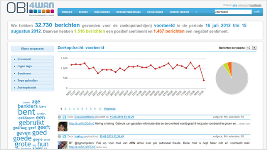 De sentimentanalyse trainen we op basis van voorbeelddata. Deze voorbeelddata stellen we zelf samen. Dit wordt door eigen analisten gedaan. Het is overigens altijd mogelijk om het sentiment ook vanuit de OBI4wan omgeving aan te passen.