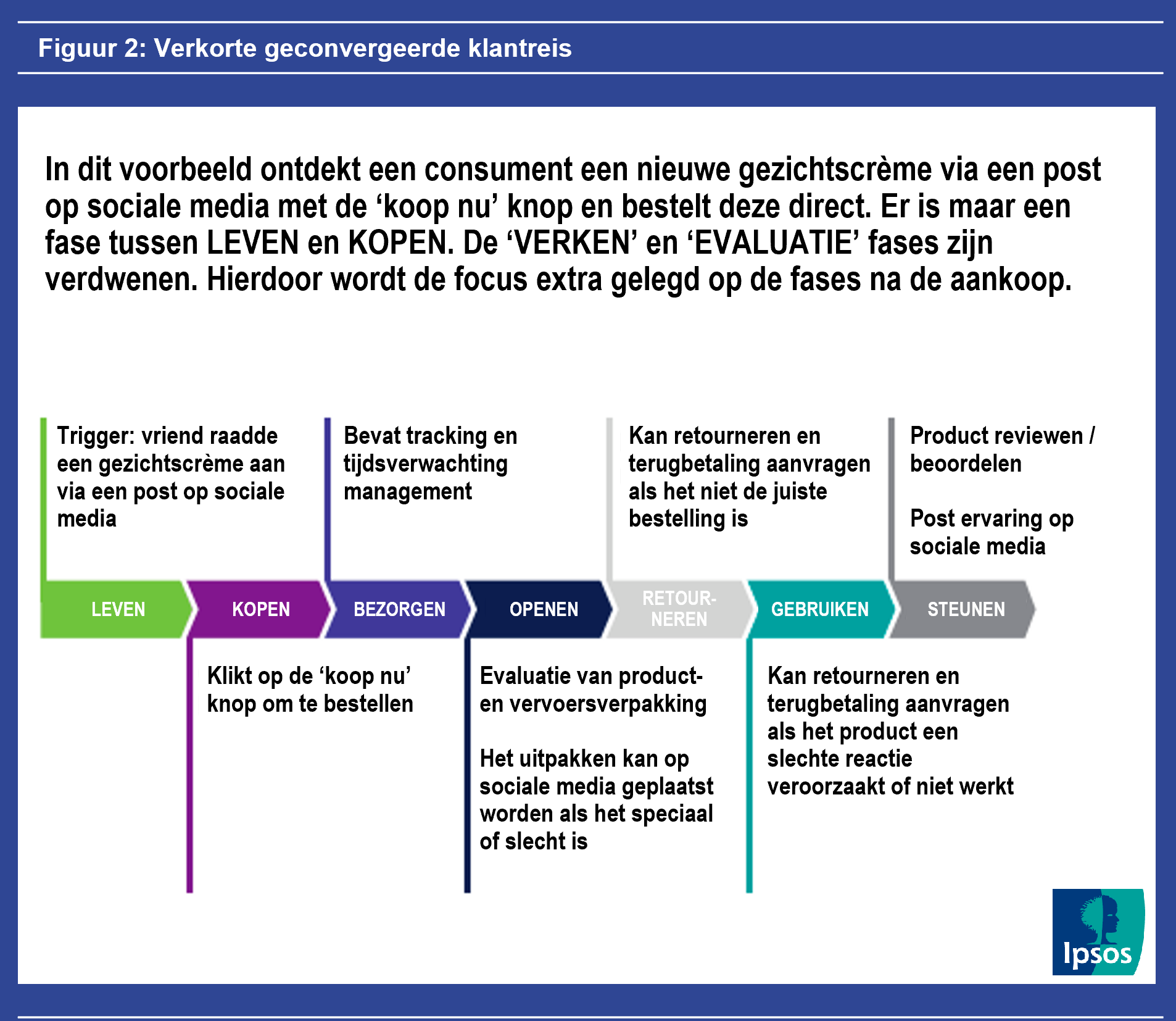 Waar vroeger meer nadruk lag op de fasen vóór de aankoop, is nu het traject ná de aankoop steeds belangrijker geworden voor de totale klantervaring. Denk dan bijvoorbeeld aan het leveren, uitpakken en retourneren van de bestelling. Kortom: het omnichannelconcept gaat nog steeds op, maar er moet speciale aandacht uitgaan naar de toenemende fragmentatie en convergentie van retailkanalen. Zo kunnen kansen op het gebied van klanttevredenheid en conversie optimaal worden benut, en kan een merk waarde toevoegen.