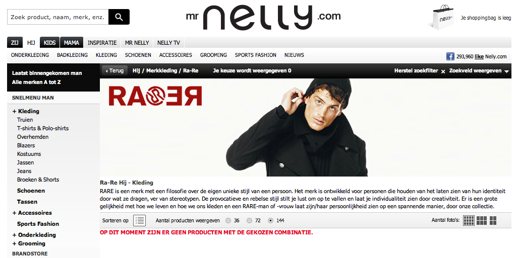 http://nelly.com: een lege categorie, de bezoeker blijft achter in verwarring.