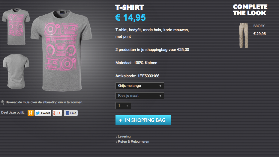 Webwinkels met producten waarvoor een keuze noodzakelijk is – denk aan schoenen, kleding etc. – moeten duidelijk laten zien dat deze keuze er is. Is een t-shirt te verkrijgen in verschillende kleuren? Zorg ervoor dat je niet bespaart op de content van dit product, maar zorg voor goede content bij iedere keuze. Dat betekent dat wanneer ik het t-shirt in het blauw selecteer, ik meerdere afbeeldingen van het blauwe shirt te zien krijg en niet het witte t-shirt met de mededeling dat ‘het shirt ook in blauw’ verkrijgbaar is. Zo zou je dat ook niet in een stenen winkel aanpakken. Denk vanuit de bezoeker, makkelijker dan dat kun je het jezelf niet maken.