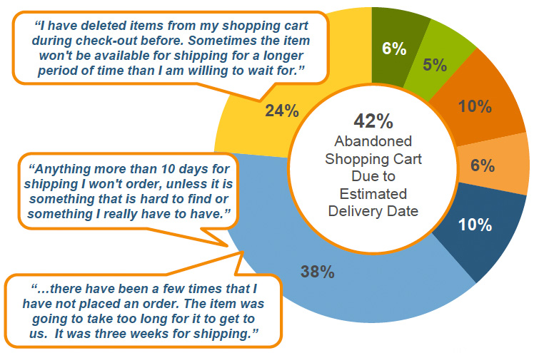 Eén van de conclusies is dat 42% van de consumenten in de laatste fase van het online bestelproces uiteindelijk afhaakt omwille van de leveringstijden. Verzendingen en een goede leveringstijd zijn maar enkele van de vele belangrijke factoren in de totale klantervaring maar ze beïnvloeden de omzet aanzienlijk. In andere aankoopstappen, zoals ‘comparison shopping’, zijn er nog belangrijke elementen.