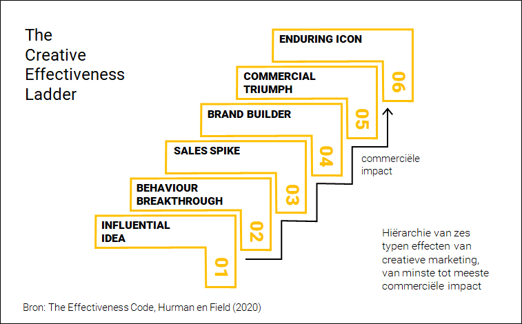 Merkcampagnes kunnen volgens Hurman en Field op elk niveau effect hebben en ook waardevol zijn voor merken. Een merk met een hoog creatieve campagne met effecten bovenin de creativiteitsladder kan dus ook een actie op het eerste niveau plannen, mits de doelstellingen aansluiten bij de langetermijnstrategie. Ook realiseren campagnes vaak effecten op meerdere niveaus tegelijk. Heel soms zelfs op alle niveaus. Maar omdat de commerciële waarde met elk niveau toeneemt, geldt wel dat hoe hoger een campagne op de creativiteitsladder scoort, hoe beter dit is.