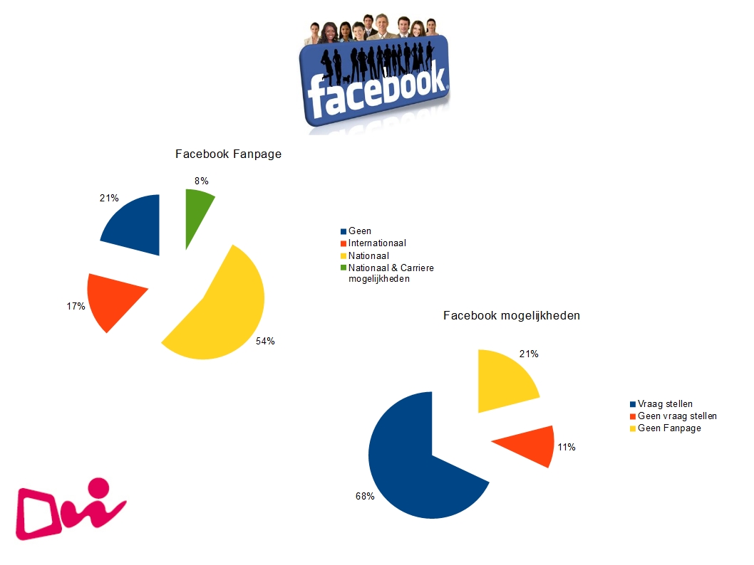 Ook bij Facebook zien we dat er slechts heel beperkt iets over carrièremogelijkheden op een fanpage wordt gezegd. Hierbij dient te worden aangemerkt dat het posten van vacatures in dit onderzoek al is aangemerkt als 'iets over carrière'.