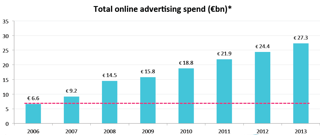 Tijdens de 8e editie van het jaarlijkse Interact heeft IAB Europe bekend gemaakt dat de online advertisingbestedingen 2013 met 11,9 procent zijn gegroeid naar een totale marktwaarde van 27,3 miljard euro. In 2012 was de online advertentiemarkt nog goed voor 24,4 miljard euro. De Oost-Europese markten zorgden voor de grootste groei. De gevestigde markten, waaronder Nederland, zetten hun stabiele groei voort gedreven door automated trading en door mobiel beter te benutten.