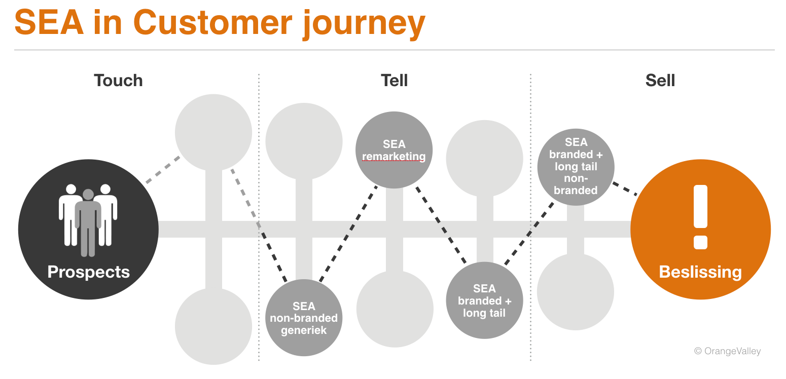Afbeelding 3: visualisatie van inzet van search advertising (SEA) in de customer journey
