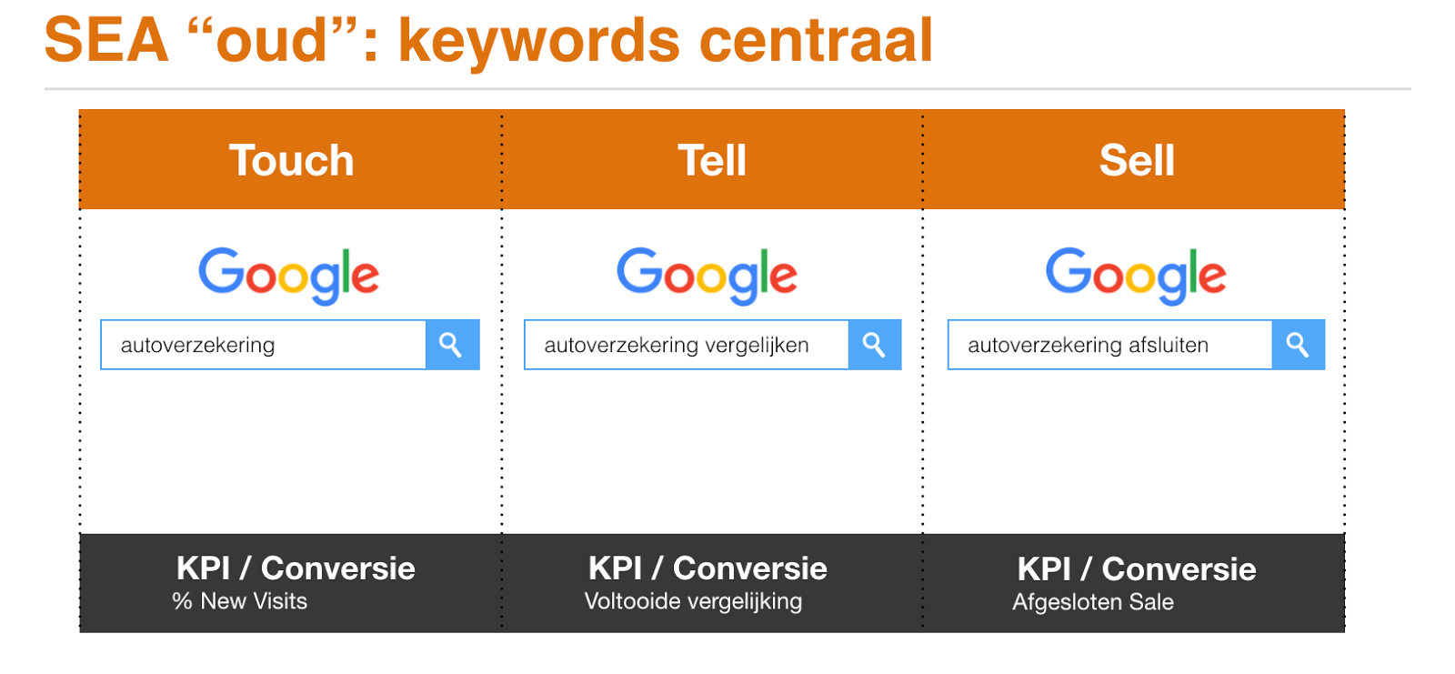 Afbeelding 6: de ‘oude’ manier van inspelen op de customer journey met zoekmachine-adverteren (SEA)