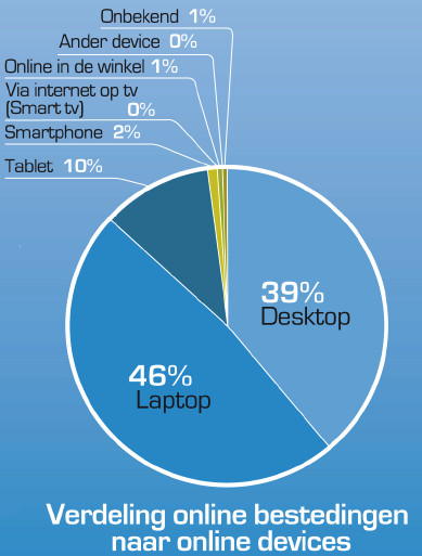 De tablet is het meest gebruikte mobiele apparaat om online aankopen mee te doen. Van alle online kopers heeft 25 procent hun tablet (wel eens) gebruikt voor een online aankoop. 15 procent van de Nederlanders heeft in het eerste halfjaar van 2014 hun smartphone gebruikt voor het doen van een online aankoop.