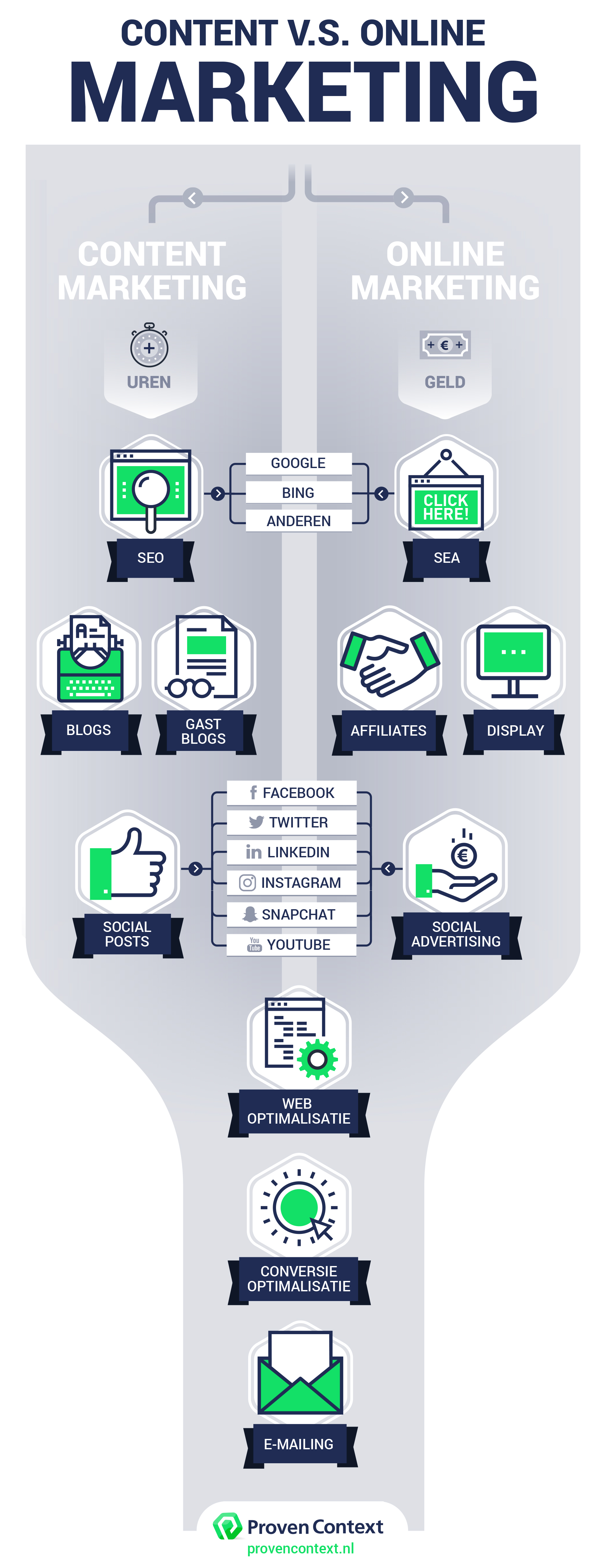 De tweede laatste punten samengevat: het verschil tussen de online marketeers en contentmarketeers is een verschil in focus: geld versus tijd. Met alle armslagen van dien uiteraard.