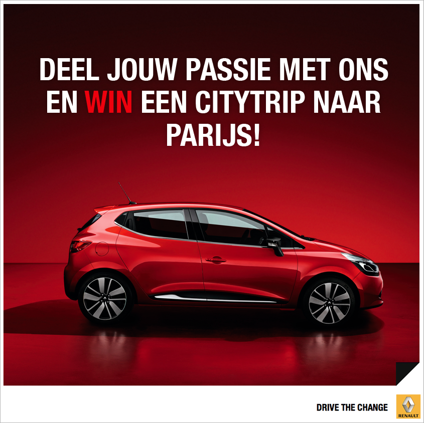 Renault Nederland geeft bijvoorbeeld regelmatig prijzen weg, zoals een jaar lang rijden in de nieuwe Renault Clio, een citytrip naar Parijs of een culinaire reis door Frankrijk in de nieuwe Renault Grand Espace. Dit maakt de pagina van de autofabrikant tot de populairste in zijn categorie.