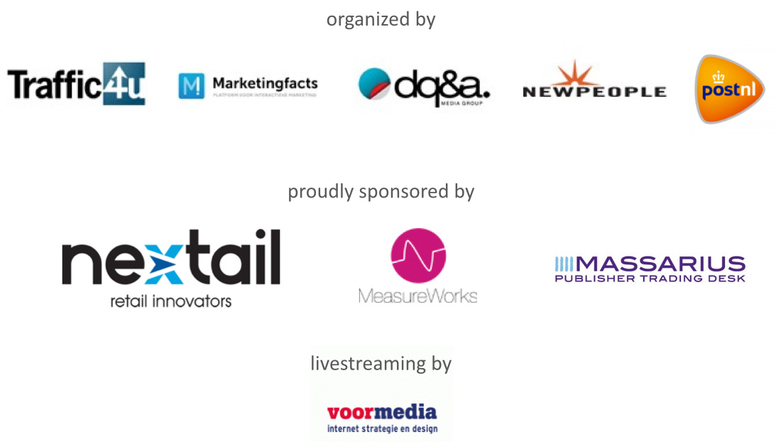 De events worden mede mogelijk gemaakt door onze sponsoren Nextail, MeasureWorks en Massarius. De videoregistratie en livestream worden verzorgd door Voormedia.