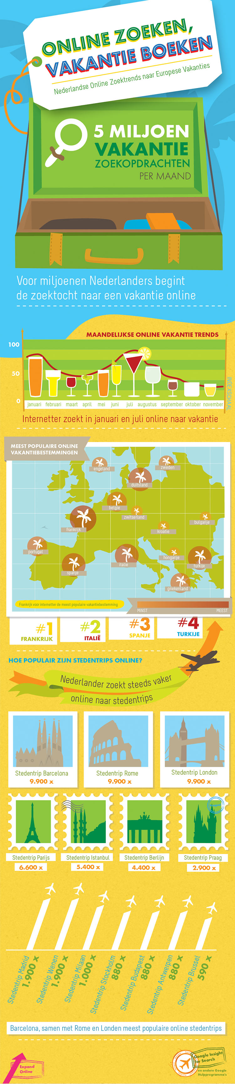 Onderstaande infographic geeft de Nederlandse zoektrends naar Europese vakanties weer.