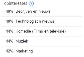 Een tip: kijk naar de top vijf onderwerpen in de interesselijst. Het is belangrijk om aan deze vijf onderwerpen genoeg aandacht te besteden in je tweets. Dit zorgt voor meer betrokkenheid met je volgers.