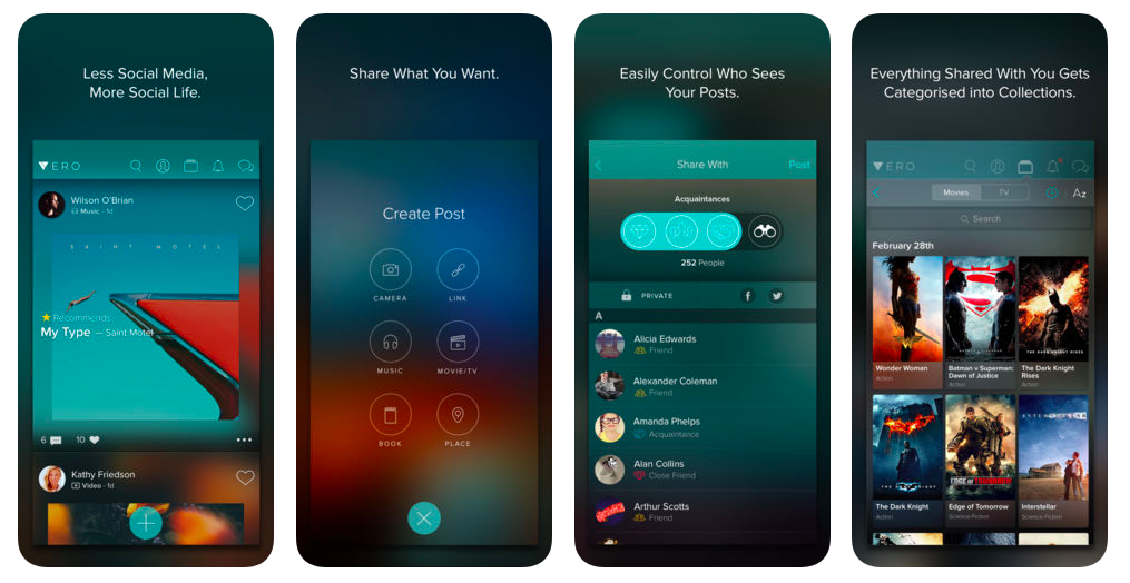 De app was voor de hype vooral geliefd bij Cosplayers die foto’s en video’s van hun kostuums plaatsten. Daarna volgden mensen uit de artistieke hoek, zoals tattoo-artists en fotografen. Nu, begin maart, heeft Vero meer dan drie miljoen gebruikers. Het mobile-only platform profileert zich als ‘true social’. Het stimuleert mensen content te delen die zij in het dagelijks leven ook zouden delen met vrienden en familie. Je kan links, foto’s en video’s, films, boeken, muziek en plaatsen posten en kiezen met welke mensen je dit precies wilt delen.