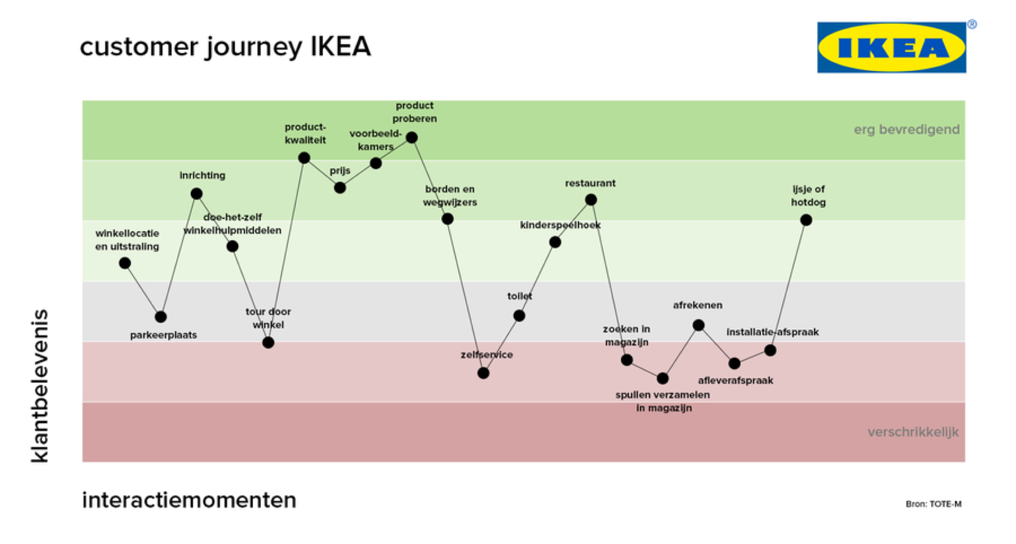 “Customer journeys die in het vakgebied als oorspronkelijke blauwdruk bekend staan, zoals die van IKEA en LEGO, richten zich vaak op de winkelervaring, de ervaring die de klant met het bedrijf heeft. Het moment dat de klant het product werkelijk gaat gebruiken, de ervaring op dat moment, ontbreekt echter vaak.”