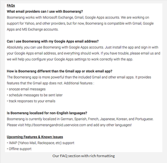 Figuur 1: rich formatting van Boomerang