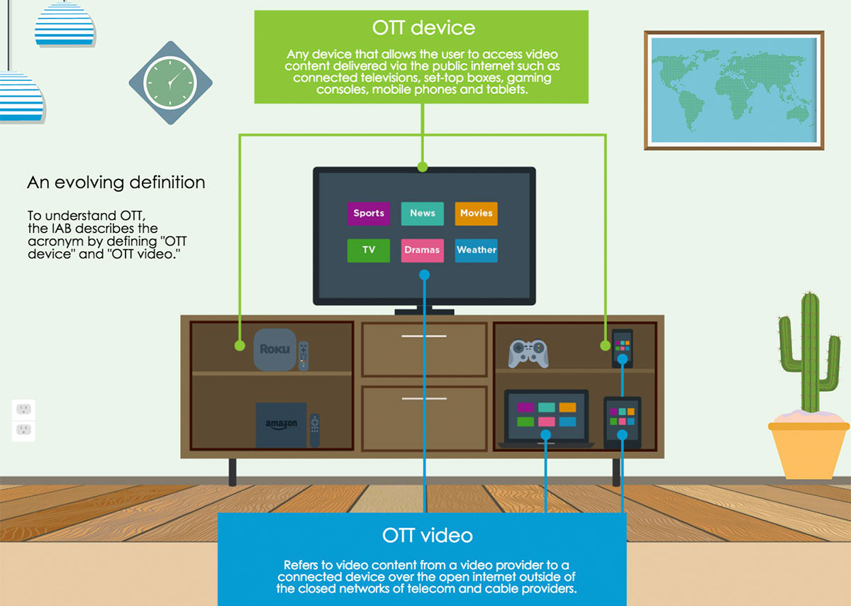 Allereerst nog even een korte uitleg over dat begrip, OTT. De afkorting staat voor ‘over-the-top’, oftewel het consumeren van online (video)content buiten het gesloten netwerk van een kabelaar of telecomaanbieder als KPN of Ziggo. Het IAB definieert OTT als volgt: