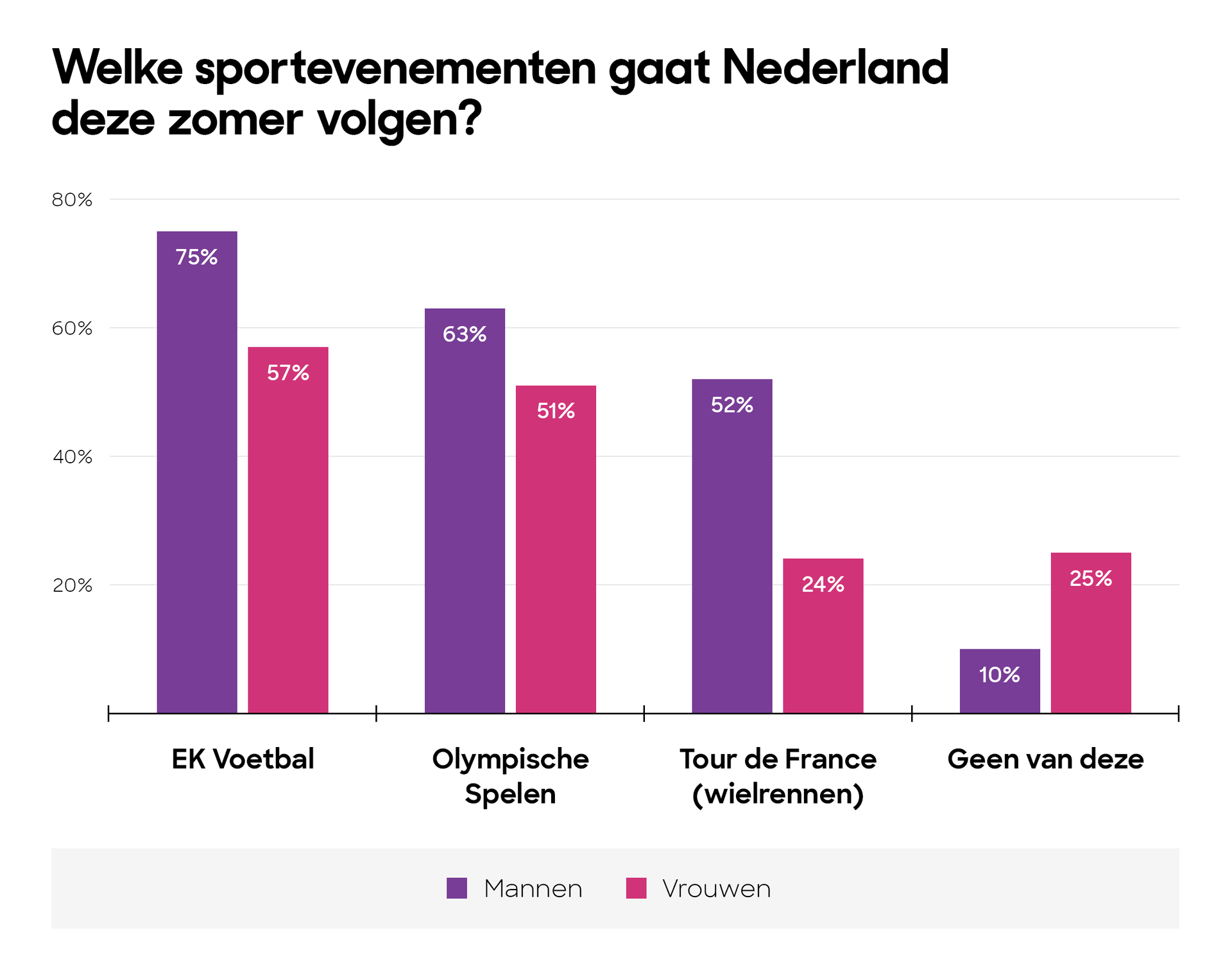 Met het EK voetbal, de Tour de France en Olympische Spelen in het vooruitzicht, belooft deze zomer een echte sportzomer te worden. 83 procent van de Nederlanders is van plan één of meer van deze sportevenementen op de voet te volgen.