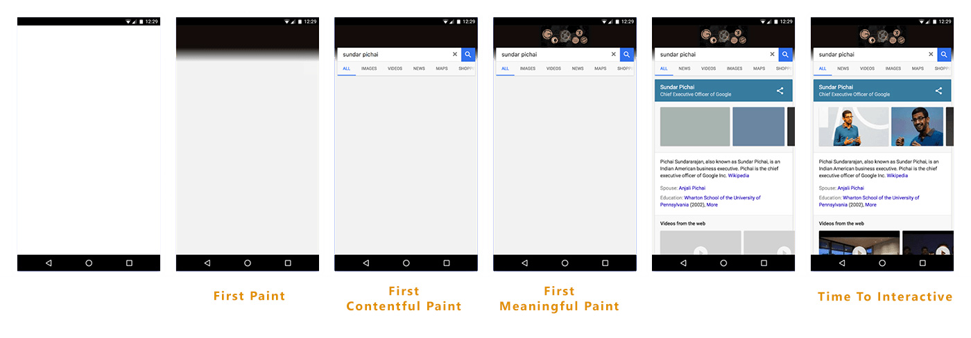 • First Meaningful Paint bepaalt hoe lang het duurt voordat de belangrijkste content zichtbaar wordt.