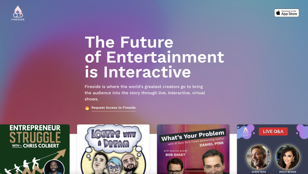 En we trekken Clubhouse weer naar een volgende level. Fireside, een service opgericht door Mark Cuban, Falon Fatemi en Mike Ihbe, is bedoeld voor professionele makers, waaronder podcasters, muzikanten, tv-persoonlijkheden en komieken. Je kunt het concept het beste omschrijven als een kruising tussen podcasting en sociale audio-apps zoals Clubhouse en Twitter’s Spaces waarbij het publiek en presentatoren anderen uitnodigen op het podium. Shows worden bekeken via een browser of iOS-app. Optredens worden opgenomen en kunnen simultaan worden uitgezonden of gepost op andere sociale netwerken zoals YouTube en Twitch of worden omgezet in een podcast. De makers kunnen inkomsten genereren door kaartjes te verkopen en/of commercials toe te voegen aan een podcastversie van hun show. In de toekomst is Fireside van plan om makers in contact te brengen met sponsors, abonnementen te verkopen en makers in staat te stellen clips van hun inhoud te verkopen als digitale verzamelobjecten die bekend staan als NFT’s.