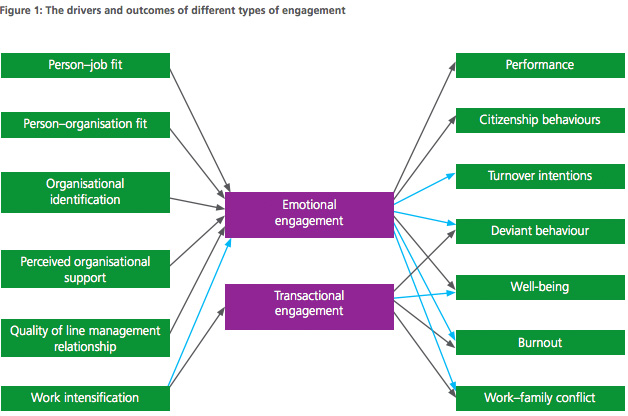 Dit onderscheid is belangrijk om te maken voor organisaties, omdat emotioneel verbonden werknemers over het algemeen beter presteren, beter 'burgerschap' vertonen binnen de organisatie, hoger welzijn hebben, minder vatbaar zijn voor burn-out of werk-privé-conflicten en hebben een lagere intentie om het bedrijf te verlaten dan hun transactionally engaged collega's.