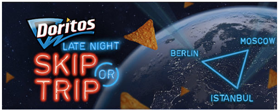 In augustus lanceerde Pepsico Doritos de ‘Doritos Skip or Trip-actie’. In de online campagne konden jongeren twee onbekenden uitnodigen om samen met hen op een citytrip te gaan. Accepteren de 2 onbekenden de uitnodiging, dan maakt het trio kans op een trip naar Berlijn, Moskou of Istanbul.