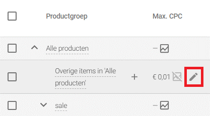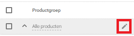 In de Google Shopping-campagne zelf druk je op het potloodje naast ‘alle producten’.