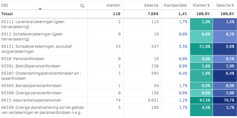 Om dat toe te lichten een voorbeeld: stel, je wilt je met account based marketing richten op de schadeverzekeraars. Met een marktanalysetool zie je precies welke bedrijven er binnen die branche vallen door ze te filteren op branche. Vanuit die selectie kun je de groep specifieker maken. Richt je je op verzekeraars met meer dan vijftig medewerkers? En moet een verzekeraar minstens vier vestigingen hebben? Op basis van deze (en nog veel meer) kenmerken selecteer je jouw focusgroep van schadeverzekeraars in een paar kliks.