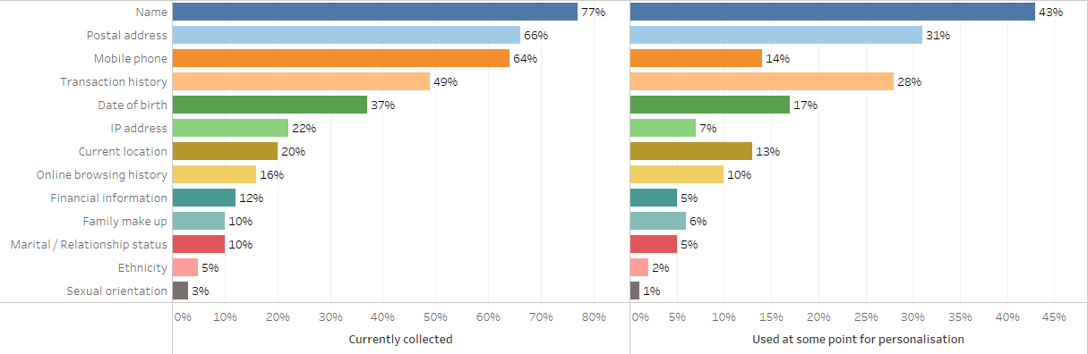 Data die over het algemeen verrijkt worden, zijn naam (77 procent), adres (66 procent) en mobiele nummer (64 procent). Tegelijkertijd worden die data nog lang niet altijd ingezet – een gemiste kans. Daarnaast is het toch bijzonder schrikwekkend dat data als gezinssamenstelling, etniciteit en seksuele voorkeur worden verrijkt. Weliswaar wordt daar nog niet veel mee gepersonaliseerd, maar mogelijk wel op geanalyseerd.